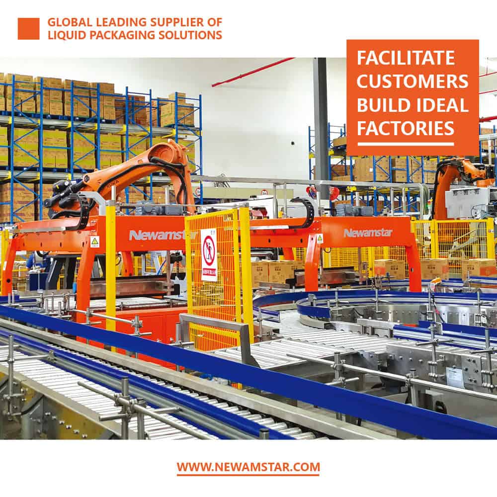 Over the years, Newamstar has always adhered to the concept of “innovation-driven development and quality wins market”. Focusing on the five major fields of beverages, dairy products, liquors, seasonings and household chemicals, Newamstar provides complete intelligent equipment and solutions including water treatment, pre-mixing, bottle blowing, filling, secondary packaging, handling robots, and intelligent stereoscopic warehouses for customers worldwide.