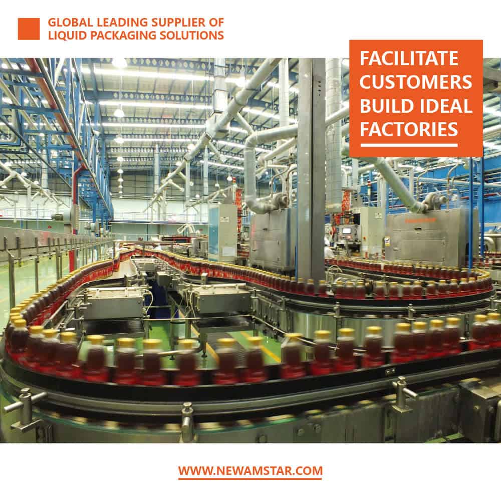Over the years, Newamstar has always adhered to the concept of “innovation-driven development and quality wins market”. Focusing on the five major fields of beverages, dairy products, liquors, seasonings and household chemicals, Newamstar provides complete intelligent equipment and solutions including water treatment, pre-mixing, bottle blowing, filling, secondary packaging, handling robots, and intelligent stereoscopic warehouses for customers worldwide.